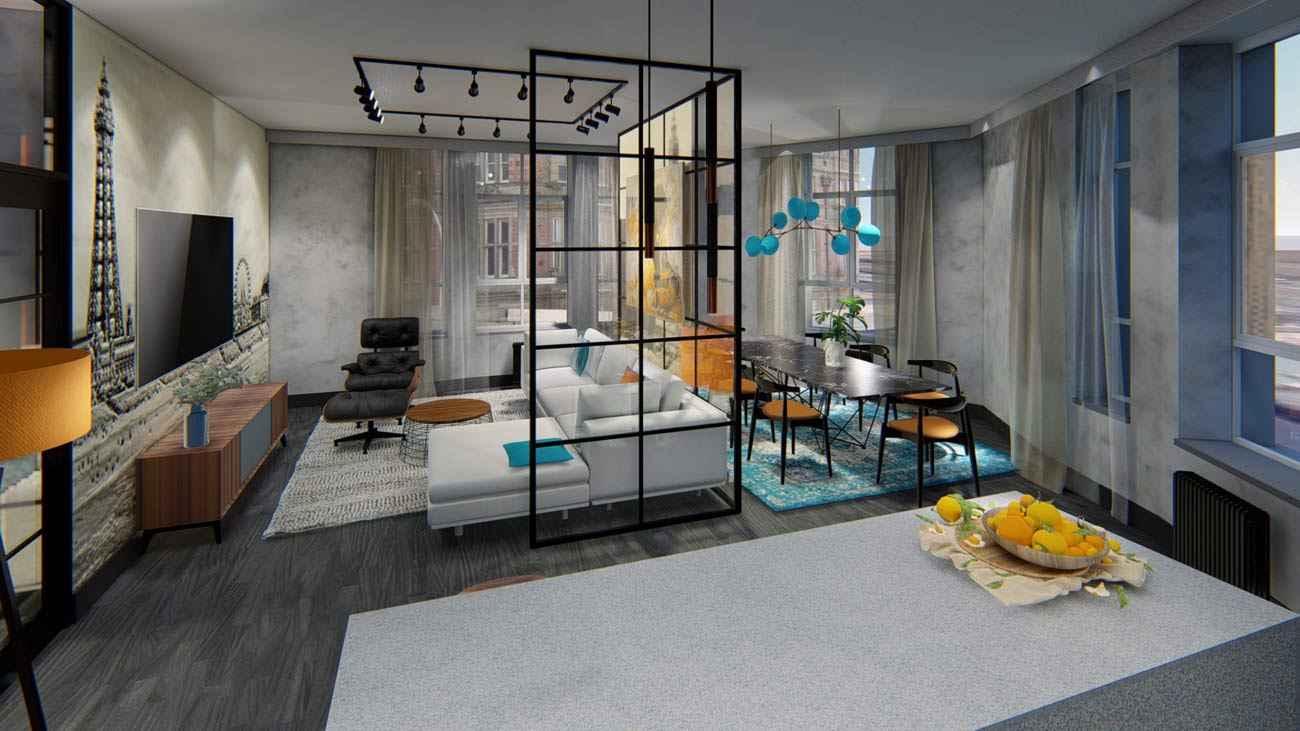 We provide a detailed plan showing these existing characteristics, so everybody shares a common understanding of what the building can do. This understanding and conversation inspires creative solutions that we can visualise with 2D plans and 3D architectural illustrations of the future potential.