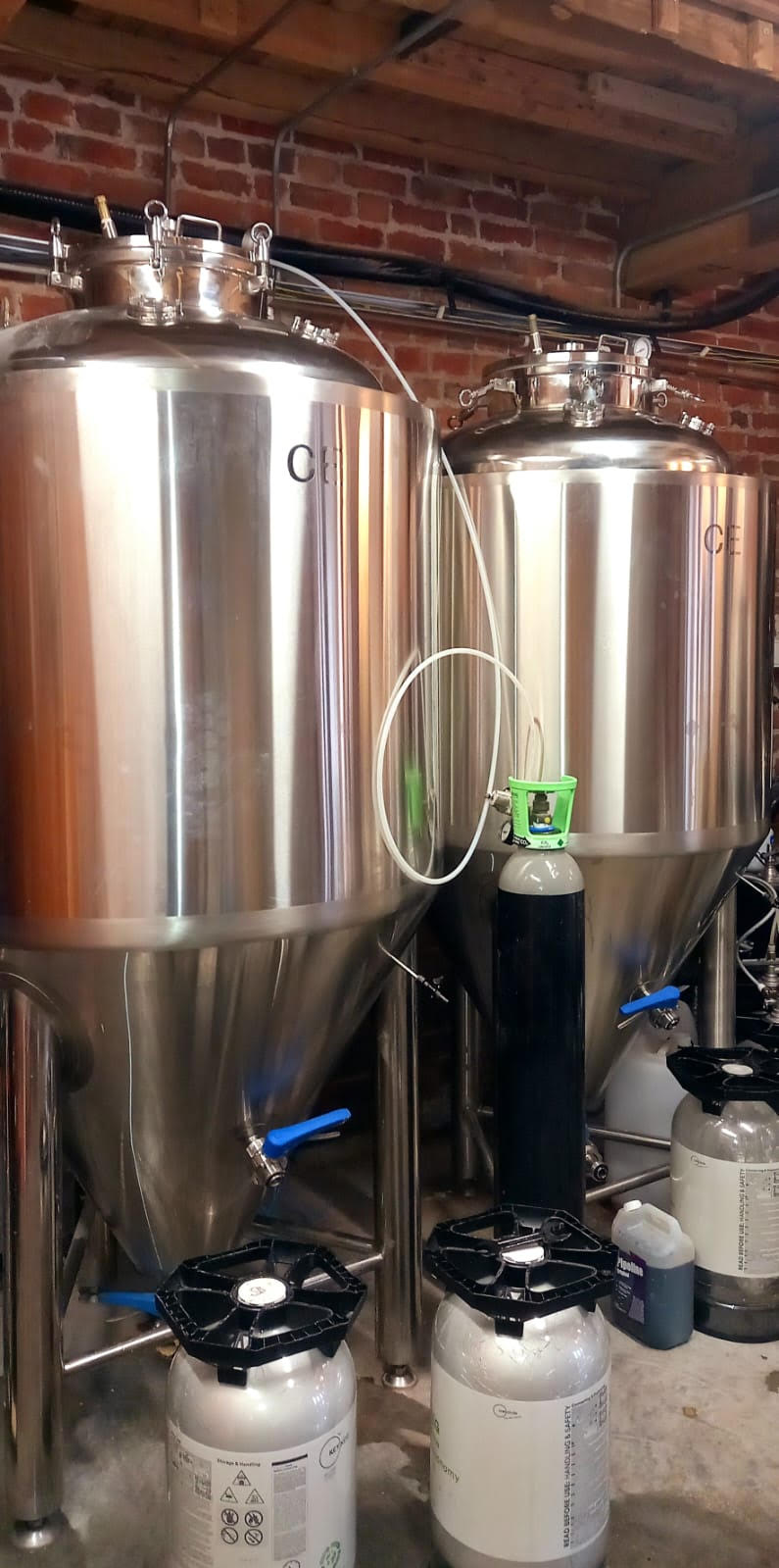 Jimbrew has installed a brewing system with a capacity of 400 litres per run. With 2 x 400 litre fermenters, this system is capable of two batches every two weeks, or once weekly depending on the schedule. The space could accommodate up to 6 fermentors whilst having enough space for other essential items and tasks in the brewery (cleaning of cask and keg, storage of cask, kegs and bottles to be filled, ingredients).