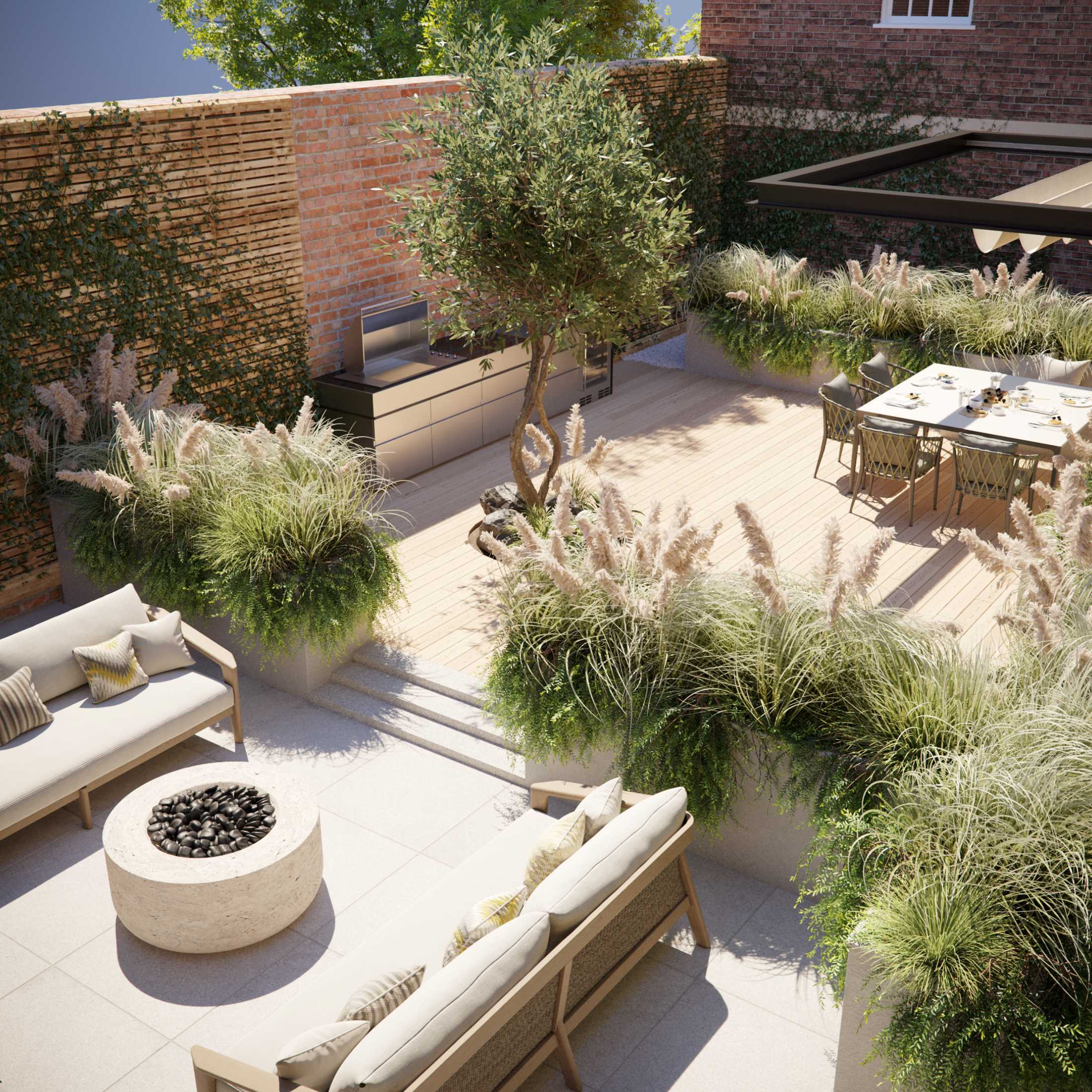 The project consisted of adding a two-story new build rear coach house to the rear of their garden, single-story rear extension, and internal home remodeling. The existing building had already gone through significant alterations back in 2018 which we provided party wall awards for. Now the main house was very nearly completed we were appointed to provide detailed technical construction drawings for the rear new build couch house, internal layout improvements, and provide a luxurious landscape design for a beautiful courtyard garden and rooftop terrace.