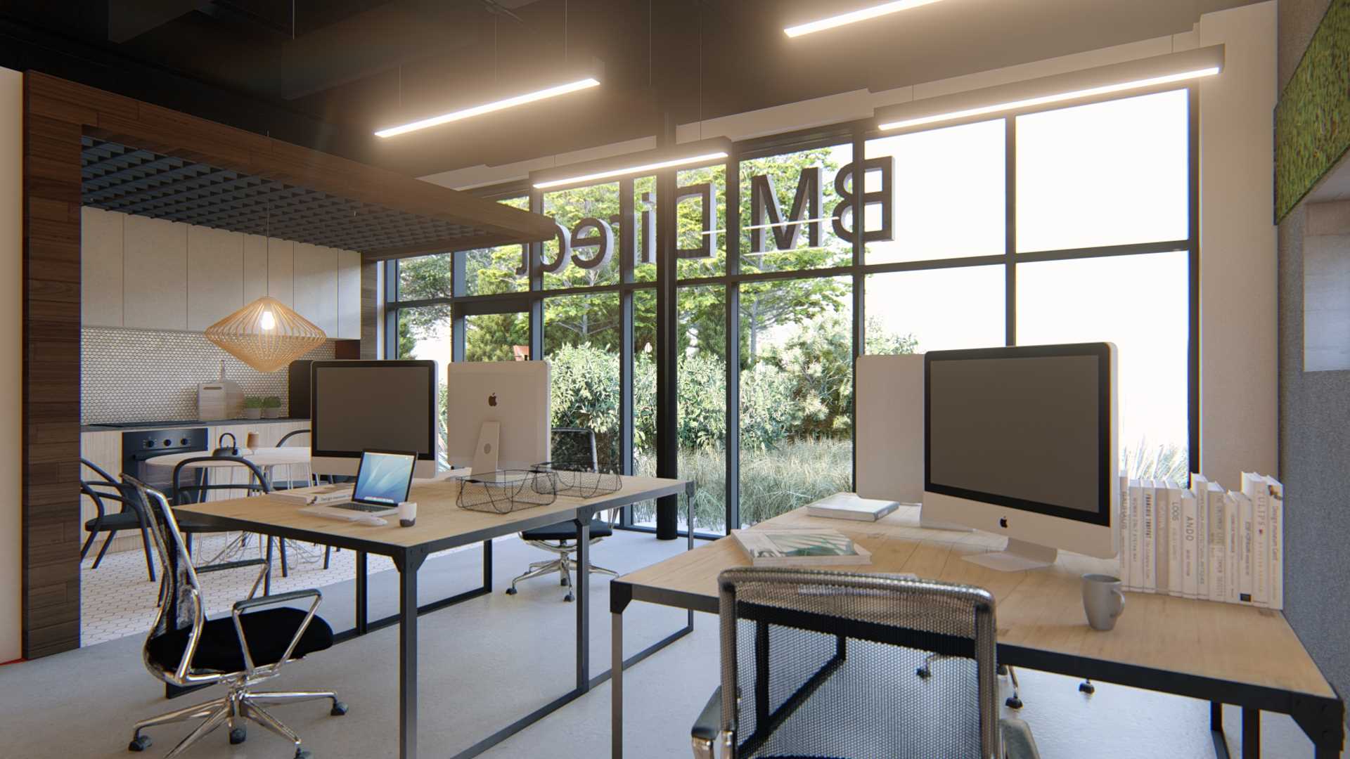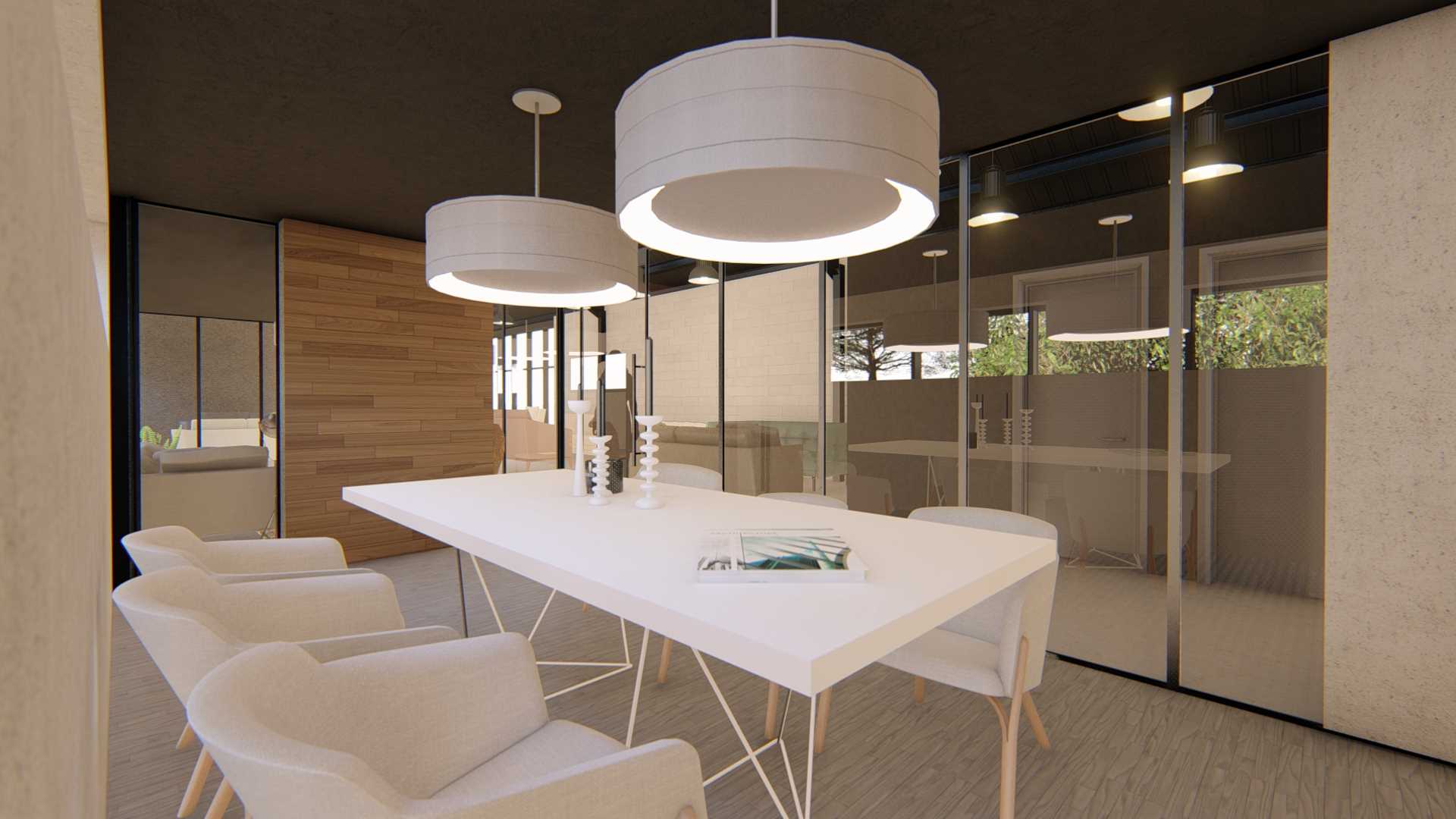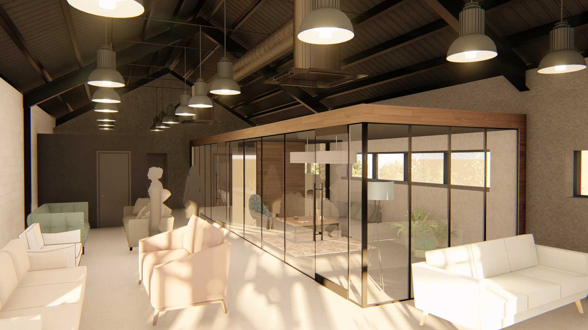 The layout has been designed to provide flexibility throughout with open-plan office and showroom accommodation. Meeting rooms have been provided using pod-like structures clad with rustic timber paneling and industrial aluminum glazed screens.