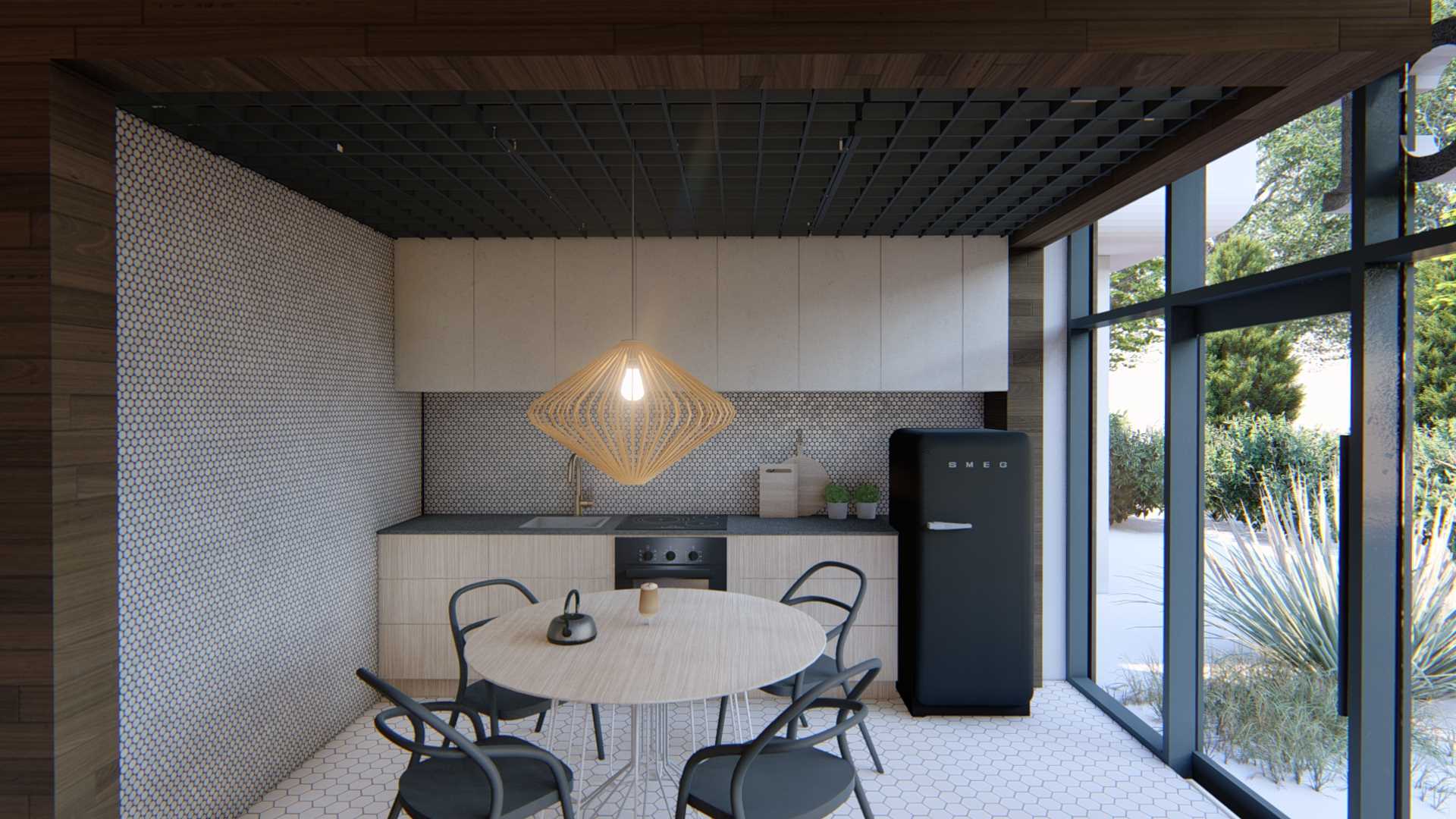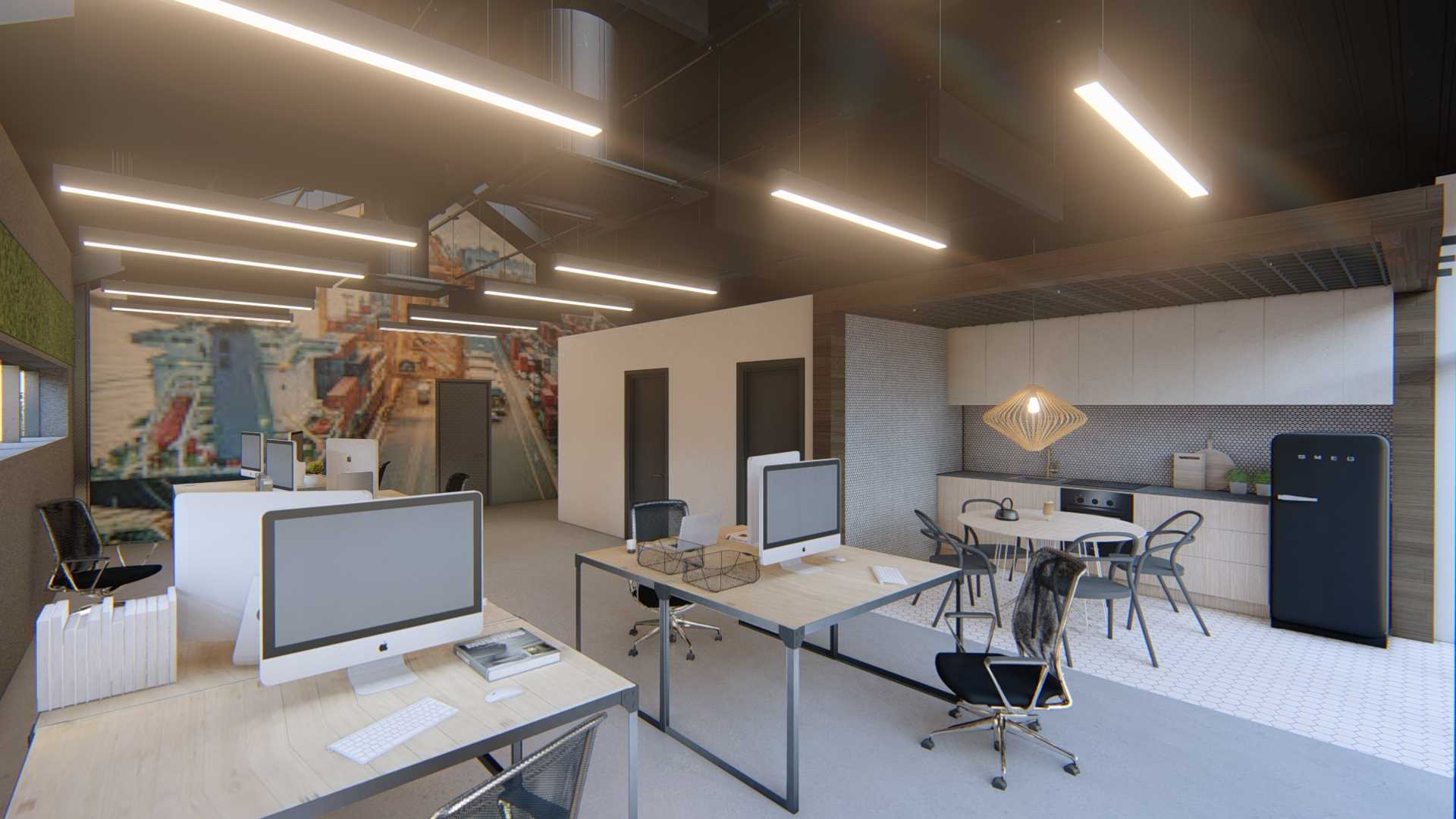 Internally has been fitted out with an industrial yet modern approach, exposing the services and featuring them by suspending form ceilings and surface-mounted galvanized conduit to walls.